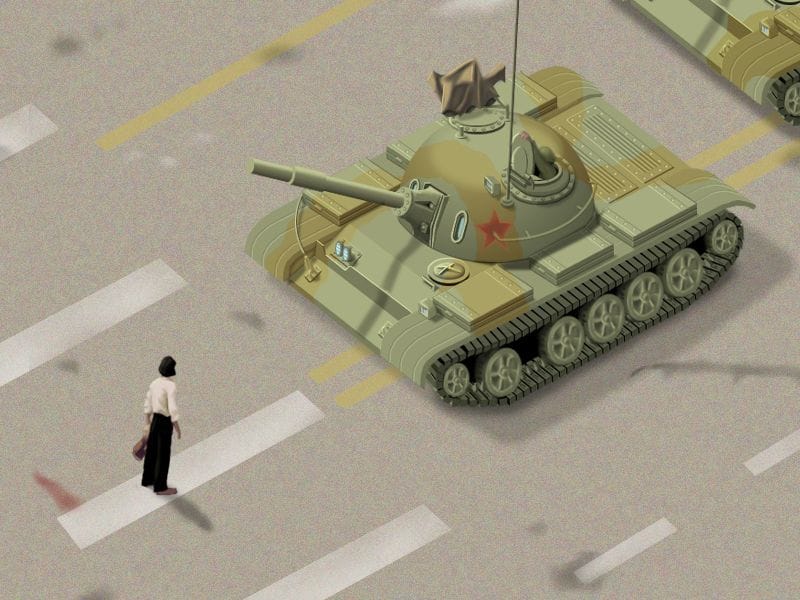 It’s not the computer game, The Sims, but it looks just like it. It’s Jon Haddock’s latest creation: Isometric Screenshots where Haddock recreates famous media scenes from the past and not-so-past, like the one shown at right depicting Wang Weilin’s protest in front of an army tank at Tiananmen Square. Other screenshots show the seizing of Eli·n Gonz·lez, and scenes from It's Godfather and Sound of Music. [Newsweek]